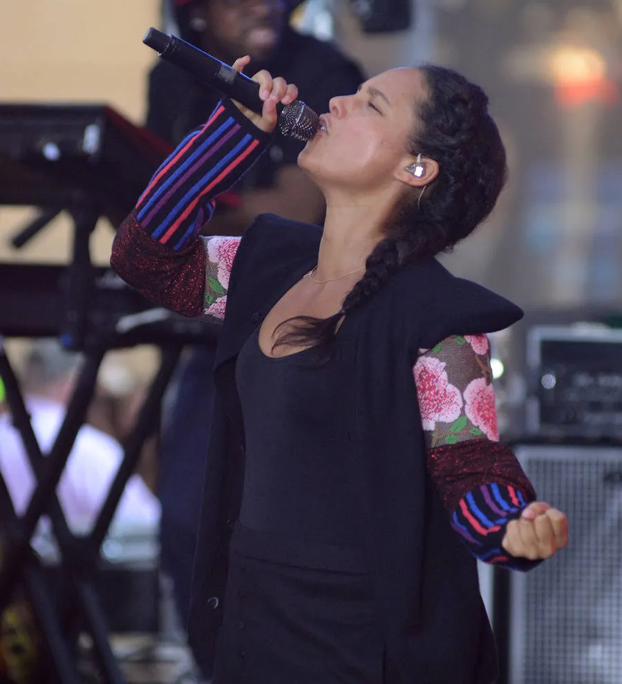 Alicia Keys brought traffic in New York's Times Square to a standstill on Sunday night (09Oct16) when she performed a secret show with special guest Jay Z.