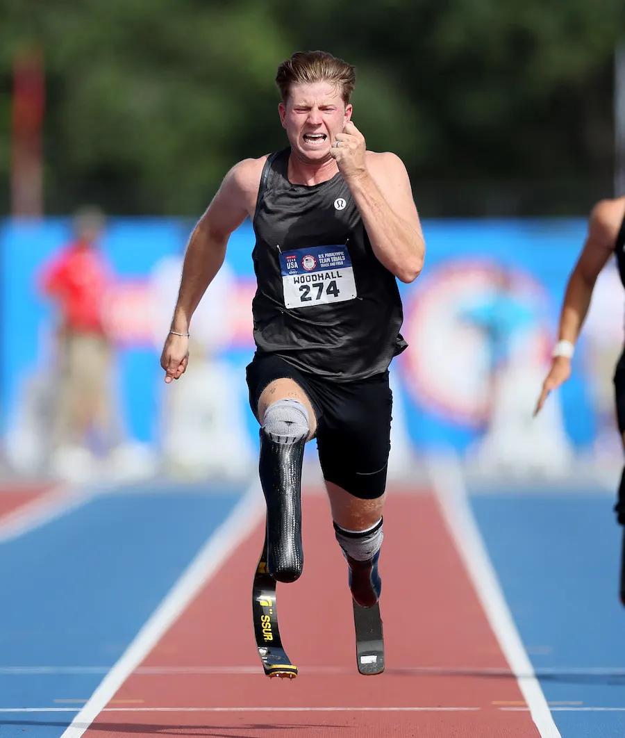 A familiar face to anyone who saw Tara Davis-Woodhall compete just a few weeks ago in the Long Jump. Yup, that guy whose arms she jumped into after her Gold Medal performance is none other than Paralympian Hunter Woodhall. He is also a Track athlete known for running the 200- and 400-meter races. Hunter had to have his legs amputated when he was just a baby due to fibular hemimelia. However, he still learned to walk, run, and play sports like other kids. He found his love for Track in high school and beat all odds when he was able to run for the University of Arkansas. Woodhall has been competing in the Paralympic games since 2016, winning Bronze in the 400-meter Sprint and silver in the 200-meter Sprint. He will compete in the 400m, 100m, and 4x100m races this year.
