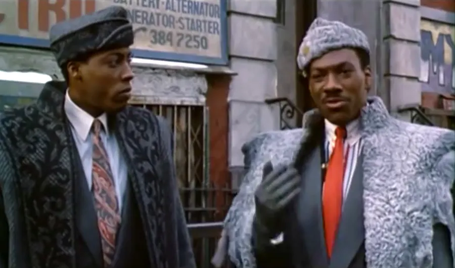 For the tragically uninformed, 1989’s Coming to America told the story of Akeem, the heir to the throne of the fictional African kingdom of Zamunda (played by Murphy), deciding to shirk his arranged marriage and search for love on his own terms in America. Along with his valet Semmi (Arsenio Hall), all sorts of hijinks ensue when Akeem insists on living in the poorest apartment building in Queens, NY, and taking a job at a McDonald’s knock-off, McDowell’s, where he meets the girl of his dreams… who is already going steady with the heir of a haircare product fortune. The movie ends with Akeem’s beloved, Lisa, surprising him on his wedding day back in Zamunda and they live happily ever after (we assume). Both Murphy and Hall take on multiple roles throughout the film, including an over-zealous local preacher and an old Jewish man in a barbershop. Oh and peep a pre-Mufasa James Earl Jones as Akeem’s father, King Jaffe Joffer.