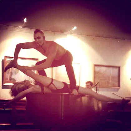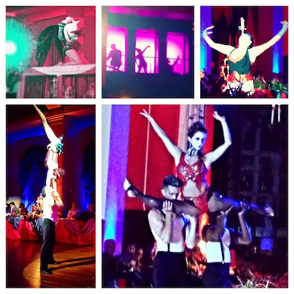 While we noshed, the “freaks” kept us entertained with some dancing, flipping, bending, balancing, snake-dancing, sword-swallowing, and all kinds of fantastic oddities.