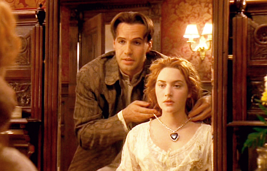 We feel there is only one right way to start off this list and that’s of course by talking about Rose’s necklace, the Heart of the Ocean. It is a 56-carat, heart-shaped sapphire which is surrounded by a halo of diamonds and suspended from a diamond chain. In the movie, it is gifted to Rose by her fiancé Cal, but it truly became iconic when Rose wore nothing but the necklace and asked Jack – aka Leonardo DiCaprio – to draw her like one of his French girls. Yes, the Heart of the Ocean is more than just a necklace – it is a symbol of hope and love. So, when Rose tosses it into the ocean at the end of the movie, it reunites her with Jack – and leaves us in tears. Truly unforgettable! (Stream on MGM+)