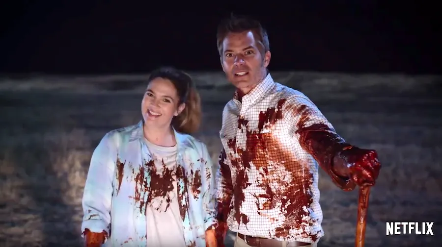 Like with most shows on Netflix, “Santa Clarita Diet” had a trailer come out about a week before the show was released. I knew virtually nothing about it prior to seeing the trailer, and if I just went off the Netflix summary (“Joel and Sheila’s marriage gets a jumpstart when Sheila debuts a truly killer new personality and an anything-goes menu. And they used to be so normal”), I would have no friggin’ idea what the heck this show is about. Even the title made me think it was something about sassy stay-at-home moms out to take each other down in a suburban turf war. But to put it simply, Sheila (Drew Barrymore) gets some kind of zombie virus that causes her to crave only human flesh, meat, and bones. Her devoted husband Joel (Timothy Olyphant) is there to help her out by any means necessary.